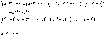 Im vorangegangenen Abschnitt ist der sogenannte „mistake indicator“ eingeführt worden. Er gibt für einen bestimmten Zeitpunkt des Lernens durch den Algorithmus an, ob oder ob nicht der Algorithmus eine falsche Voraussage für die Beispielklassifizierung machen wird.